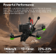 iFlight Nazgul Evoque F5 V3 utstyrt med XING2 2207 1750KV motorer, DJI mottaker, Borg Mini F7 FC og Borg Mini 60 4-i-1 60A ESC og DJI O4 Pro Air Unit, denne har også GPS og er vanntett-versjon. GPS Rescue er montert (må aktiveres). Her får du 4K stabilisert bilde med 155° ultra bred vinkel. Dronen har XT60 kontakt, armene har også TPU-printet deler på endene for litt bedre beskyttelse av dronen. Dronen har konfigurerbar ramme, du kan enten fly den som "True-X" eller "Deadcat".