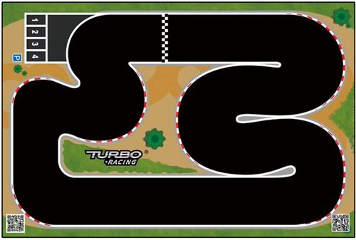 Turbo Racing Track Mat 120x80cm er en teppe racingbane for 1/76 bilene. Et genialt tilbehør for din Turbo Racing bilsamling! Enkel å lagre, rulles enkelt sammen.