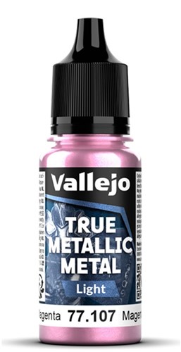 Vallejo TMM (True Metallic Metal)-serien er spesialutviklet akrylmaling for modell- og miniatyrmaling. Light-fargene er utviklet for å fremheve Base-fargene og skape highlights og myke overganger, og er det siste steget i Base-Shade-Light-systemet. Malingen inneholder ultrafine metallpigmenter som skaper en realistisk metallisk effekt med naturlig refleksjon og metallisk glans. For deg som ønsker metalloverflater med et autentisk uttrykk.