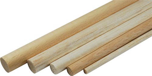 Rundstav i bøk (ikke balsa). Dette er staver som er betydelig stivere og kraftigere enn balsa.