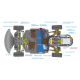 Akkurat som på originalbilen benytter modellen bakhjulsoppheng med trailing arms. Disse er støpt i karbonfiberforsterket plast for å oppnå høy stivhet og stabilitet under kjøring. Fronten har doble triangelarmer, mens bilen totalt sett har uavhengig hjuloppheng på alle fire hjul, noe som bidrar til realistiske kjøreegenskaper.