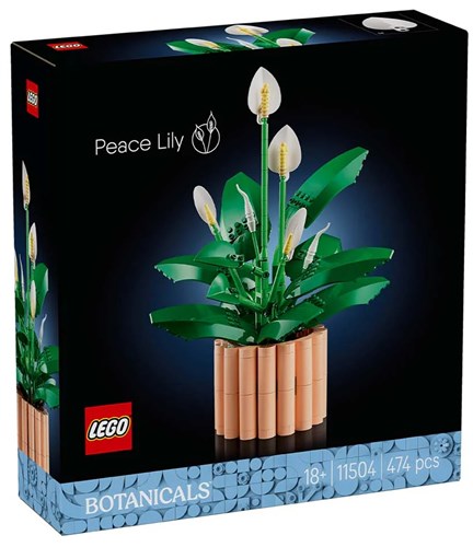 Med byggesettet Lego Botanicals Fredslilje (11504) for voksne kan naturelskere bygge en vakker liljedekorasjon. Slipp kreativiteten løs med en nydelig, byggbar Lego fredslilje med blomster i tre stadier av blomstring: to knopper, to delvis åpne blomster og to som er i full blomst. Bygg de imponerende naturtro Lego blomstene, og utforsk gøyale detaljer som gulrøtter i ny farge som fungerer som blomsterstanden (spadix) på de halvåpne liljene, og popkorndelen øverst på spadixen til liljene som er i full blomstring. Settet består av 474 deler.