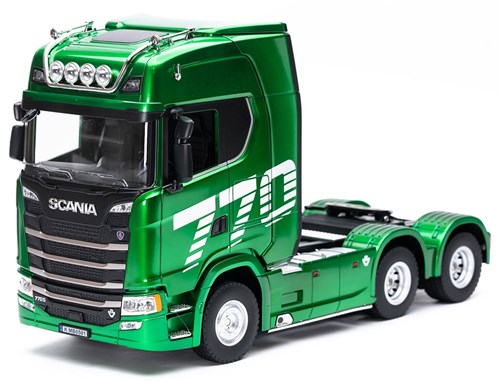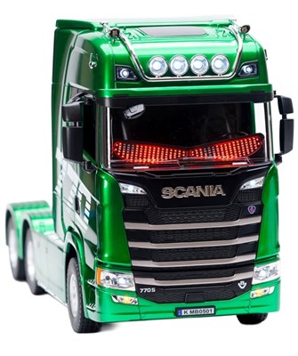 Lisensiert Scania 770S lastebil i 1/18 skala med firehjulsdrift (4WD). Modellen kan kjøre fremover og bakover, samt svinge til høyre og venstre. I tillegg har den flere kule funksjoner som gir en autentisk skalaopplevelse. Leveres komplett, med unntak av 4 stk. AA-batterier til radioen.