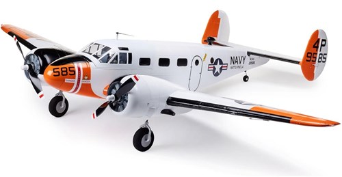E-Flite Beechcraft D18/RC-45J er en nydelig og detaljert skalamodell med 1,5m vingespenn, cockpit med pilot, ledlys og elektriske retracts for å nevne noe. Du behøver en Spektrum radio med DSMX og 6-8 kanaler samt batteri (3-4s LiPo) og lader til dette for å fly. Øvrig elektronikk er ferdig installert og selve modellen trenger kun enkel montering.