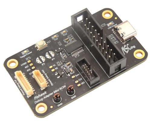 Pixhawk Debug Adapter gir JTAG, SWD og seriell tilgang for feilsøking av Pixhawk-kompatibel hardware. Støtter både 6-pin og 10-pin debug-grensesnitt og gir enkel tilkobling til utviklingsverktøy.