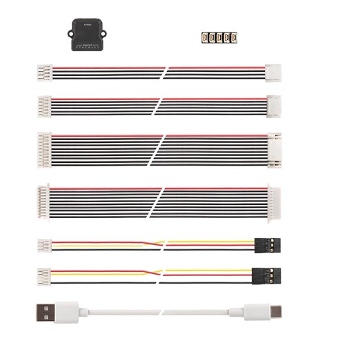 2x PWM Board 1x CAN/I2C Splitter 3x GHR 1.25mm 4 to 4 pin cable (CAN&I2C) 5x GHR 1.25mm 6 to 6 pin cable (Power&TELEM) 2x GHR 1.25mm 10 to 10 pin cable (PWM) 1x SH 1.0mm 10 to 10 pin cable (Debug) 1x GHR 1.25mm 3 to DuPont 2.54 3 pin cable (SBUS OUT) 1x GHR 1.25mm 5 to DuPont 2.54 3 pin cable (RC) 1x Type-C USB cable