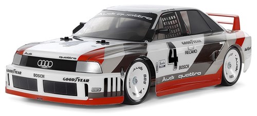 Byggesett av Audi 90 med Tamiya TT-02 Chassis. Kitet leveres med et ulakkert Audi Quattro karosseri, 540 børstermotor og regulator. Du behøver resterende elektronikk, se anbefalt tilbehør.