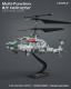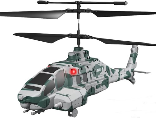 Dette helikopteret kommer med et stilig design basert på det amerikanske helikopteret Apache. Helikopteret har en flytid på ca. 7 minutter og leveres med ti avtakbare og gjenbrukbare "missiler", som gir morsom og dynamisk lek. Apache kommer med funksjoner som hjelper deg å holde høyden og gjør take-off enklere. I tillegg har den justerbar hastighet, stabilisering og ledlys. Beregnet for innendørsbruk eller ute under vindstille forhold.